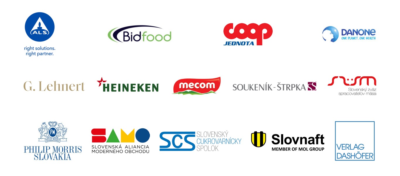 ALS Slovakia, s. r. o.Bidfood Slovakia s. r. o.COOP Jednota Slovensko, spotrebné družstvoDanone s. r. o.Eurofins Food Testing Slovakia s. r. o.G. LehnertHeineken Slovensko, a. s.MECOM GROUP s. r. o.Philip Morris Slovakia s. r. o.Slovenská aliancia moderného obchoduSlovenský cukrovarnícky spolokSlovenský zväz spracovateľov mäsaSLOVNAFT, a. s.SOUKENÍK - ŠTRPKA, s. r. o.Verlag Dashofer, vydavateľstvo s. r. o.